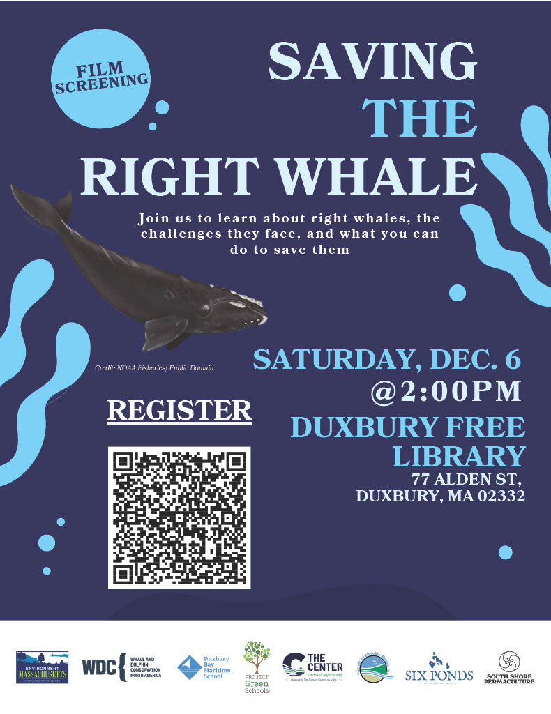 | Saving the Right Whale Movie | December 6 | 2:00pm - 4:00pm | Duxbury Public Library 77 Alden Street Duxbury |